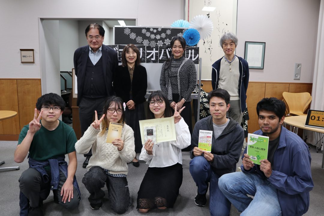 今年は5人の学生が参加し、白熱したバトルが展開されました。接戦を制し、メィーフートゥエさん(国際教養学部3年)が発表した『キッチン』が今年度のチャンプ本に選ばれました。